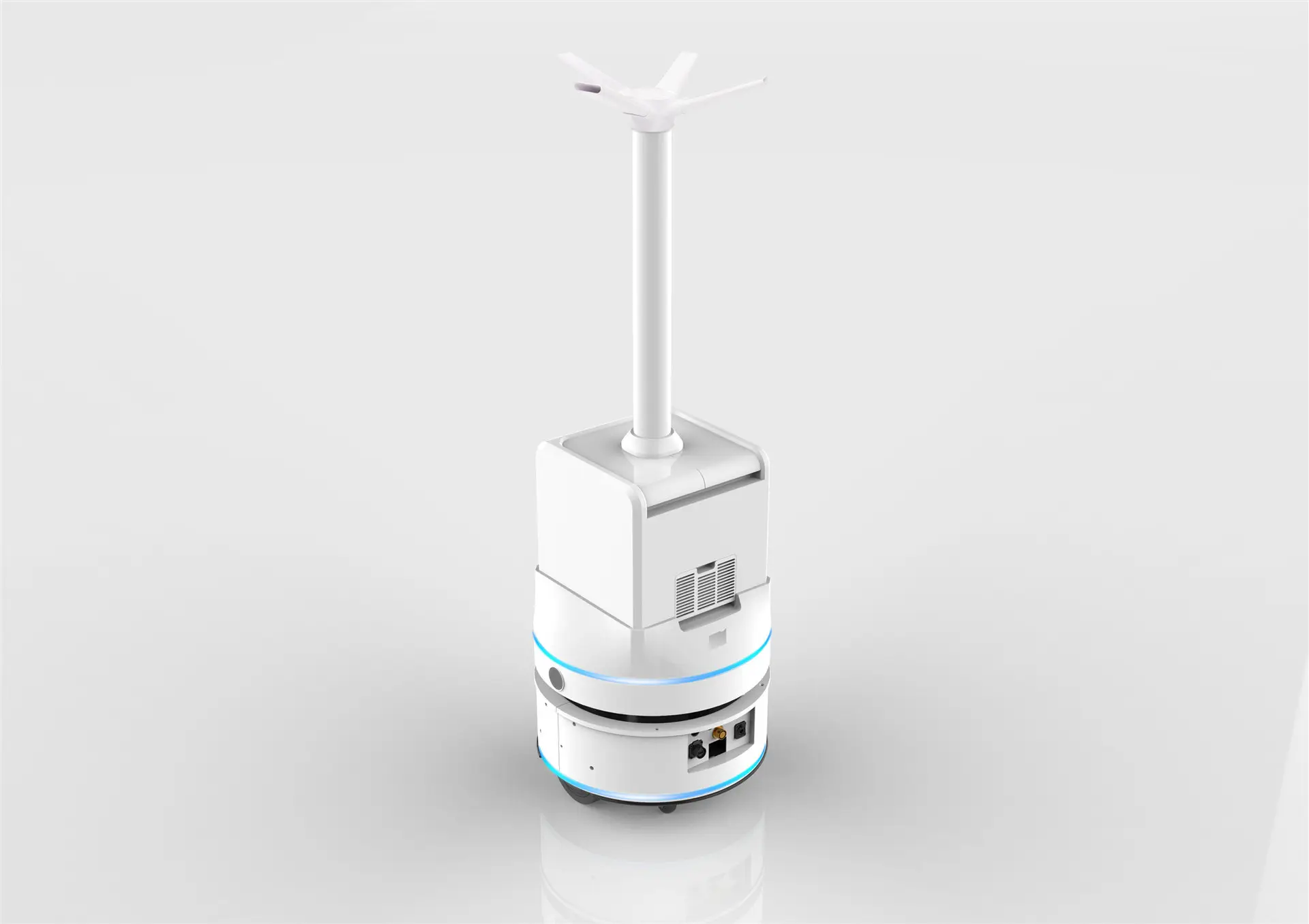 消毒防疫機(jī)器人簡(jiǎn)稱消毒機(jī)器人,機(jī)器人為載體,在機(jī)器人內(nèi)部裝置消毒系統(tǒng),有霧化消毒機(jī)器人、紫外線消毒機(jī)器人、等離子消毒機(jī)器人、強(qiáng)光脈沖消毒機(jī)器人等。其中霧化消毒機(jī)器人應(yīng)用最為普遍,霧化消毒機(jī)器人是將消毒霧化,產(chǎn)生消毒氣體,利用機(jī)器人的氣動(dòng)系統(tǒng)將消毒氣體快速的在室內(nèi)空間擴(kuò)散,增加消毒的覆蓋面和均勻性,能有效、無死角地殺滅空氣中的致病微生物,消毒機(jī)器人能夠根據(jù)設(shè)定的路線自動(dòng)、高效、精準(zhǔn)的對(duì)室內(nèi)進(jìn)行消毒防疫。